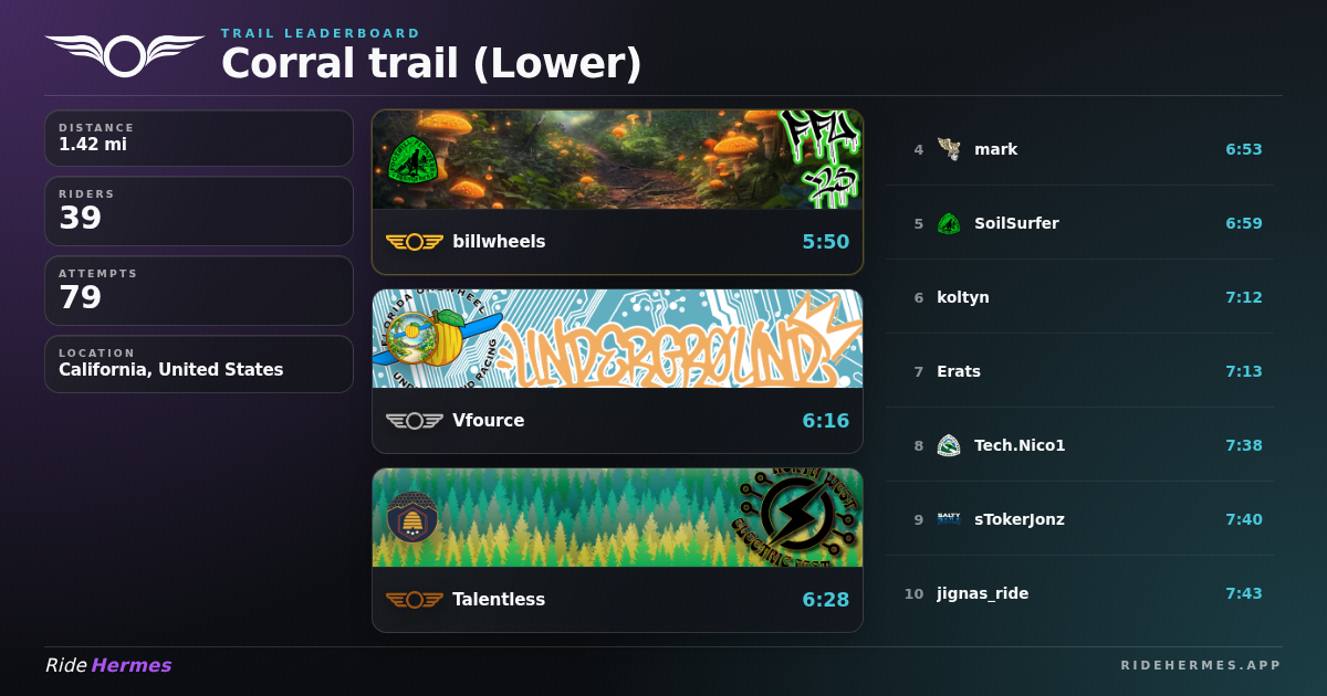Corral trail (Lower) is located in California and covers 1.42 miles.